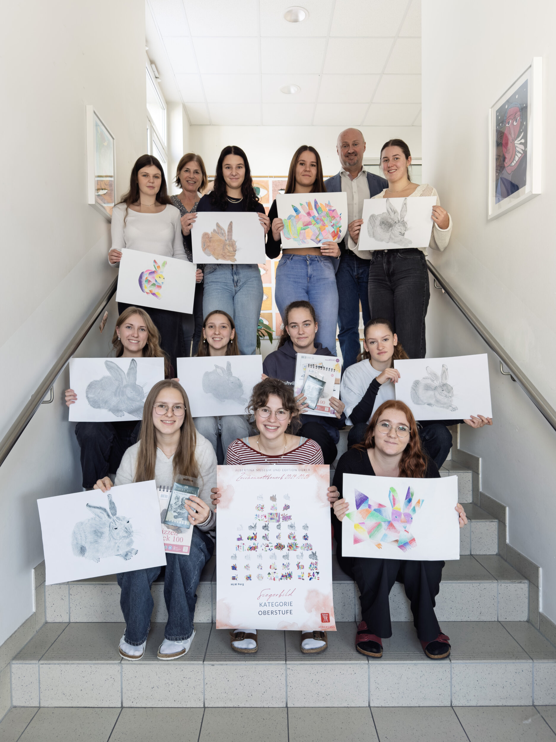 Die begabten Künstlerinnen erhielten von der Albertina neben einer Urkunde, die mit den von den Schülerinnen gestalteten Dürer-Hasen geschmückt ist, auch ein Paket mit hochwertigen Zeichenutensilien. Damit nicht genug: Demnächst werden die Gewinnerinnen an einem kostenlosen Workshop in der Albertina teilnehmen.